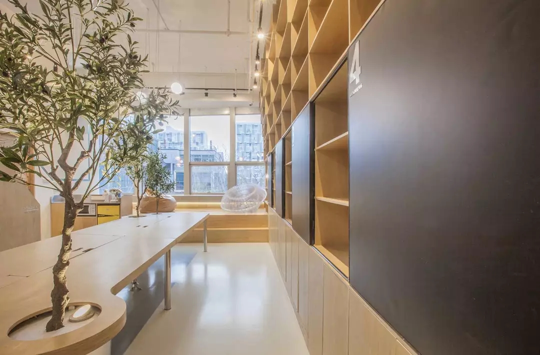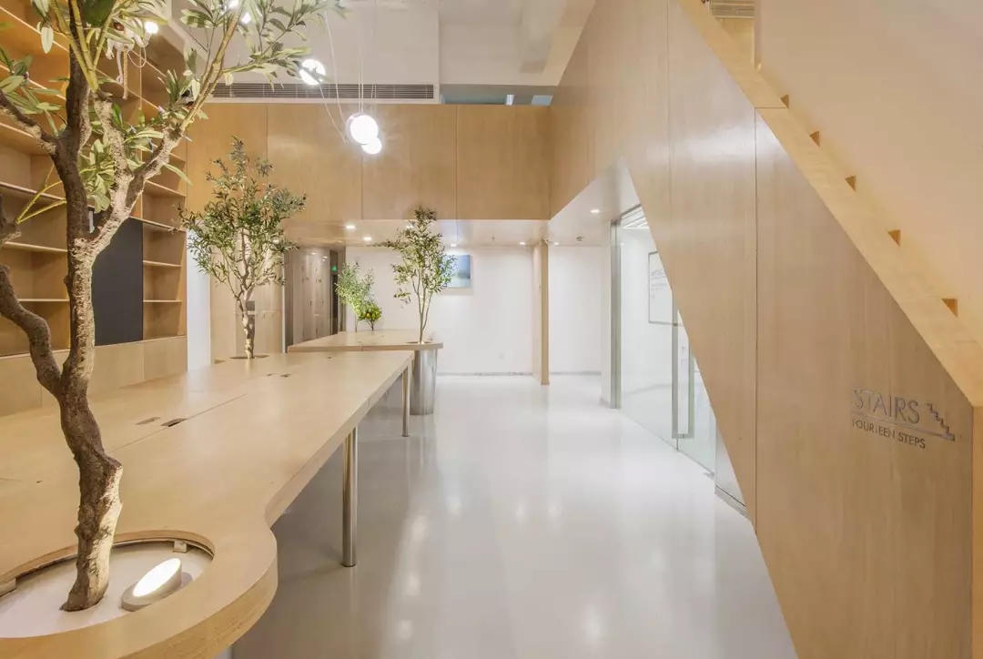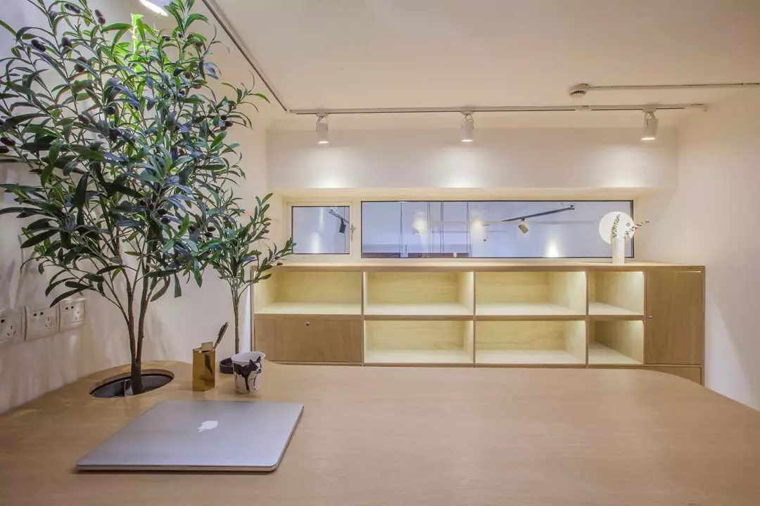 該項目位于上海市閔行區(qū)七寶萬科國際;我們希望工作室足夠的輕松、溫性、創(chuàng)意,于是通過顯性與隱性的符號對我們的目標進行構建;空間用了大量溫暖的木色,并組成木質的空間體塊,這些體塊以整個白色空間為背景,進行功能與空間節(jié)奏上的構筑:
