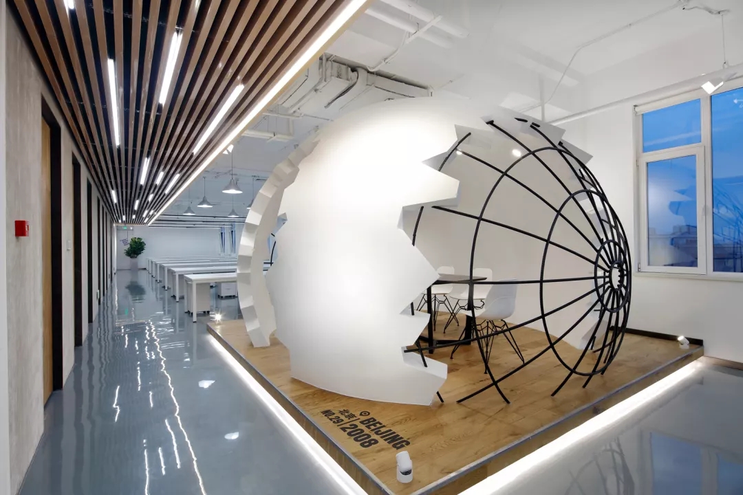 于是在這個項目中,F(xiàn)IVE SENSE以懷揣夢想和激情的年輕人為藍本,在有限的空間中預留足夠的公共區(qū),引入他們喜愛的生活場景,減少了多余的預留工位和傳統(tǒng)的封閉會議室。取而代之的是一連串有趣而具有多重實用性的中性空間。