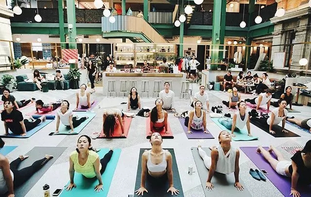 每周三是WEWORK的WELLNESS WEDNESDAY,全球的WEWORK社區都會在周三組織健身社區活動,圖為WEWORK威海路會員LULULEMON請來他們的明星教練指導社區健身
