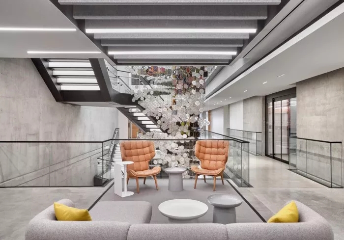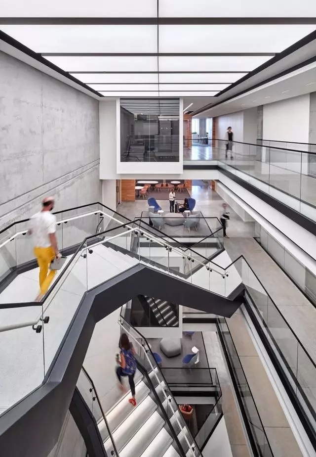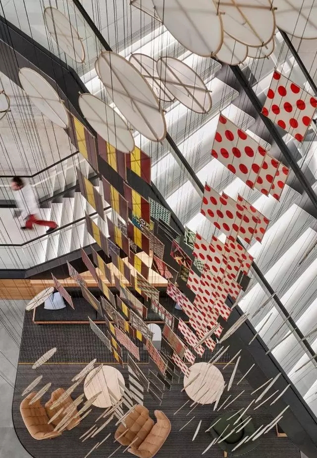 麥當勞總部芝加哥一個充滿活力的長廊布局像博物館或畫廊空間每個總部的九個故事都被設想為一個逐層展開的“篇章”。建筑物中央中庭的多向樓梯提供了醒目的焦點和休閑互動的大道,同時也創造了一種在許多方向向前移動的ESCHER-ESQUE感覺。在這里,JACOBHASHIMOTO的巨型藝術作品向下瀑布,包括數百個他的標志性微型“風箏”。