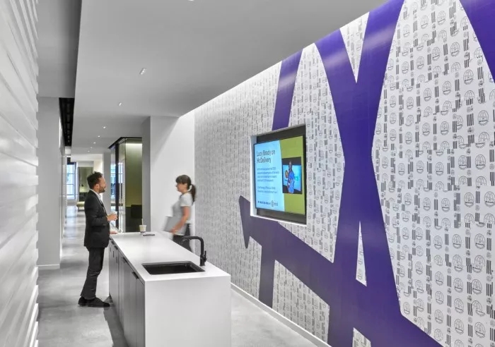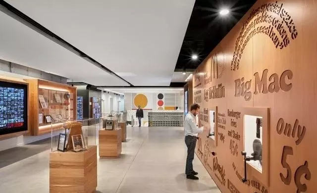 麥當勞總部芝加哥老式佩妮破碎機和其他紀念品正在展出設計團隊解釋說,“中庭拼出故事的上下共享空間”。“每一層都喚起了麥當勞成功的特定元素-廚房,風味,人民和社區。每個樓層都在慶祝創新。辦公室提供各種工作方式,為休閑互動或更正式的會議提供各種各樣的設置。工作人員可以利用一系列旨在提高生產力和效率的私人和共享區域。