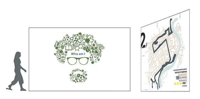 以上是本期課程第一個重點——環境圖形的內容界定。它包括室內的導視標識、一系列公司的文化展示,這兩塊內容基本構成了室內環境圖形設計的設計內容。