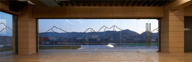 首先它起到防燥作用,其次在晝夜更替時,和山交相互應。營造出黃昏落日,獨立孤舟的意境。類似這樣的設計是富有生命力的,更應該去現場感受,建成以后在現場設計是新鮮生動的。