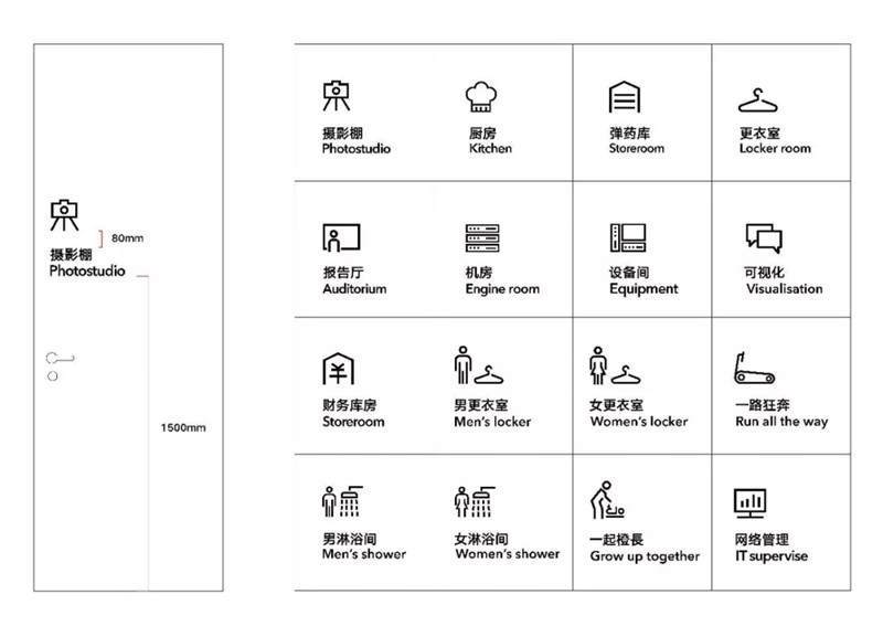 辦公室裝修內的環境圖形設計不同于常規的室內軟裝設計,它相比軟裝設計更偏向平面視覺,辦公室裝修內的環境圖形設計內容主要可以分為兩大類:第一類是包含了辦公室設計內的導視標識系統,例如門牌部門標識疏散指示消防標識設備間標識,甚至門、柜體的推拉指示等。