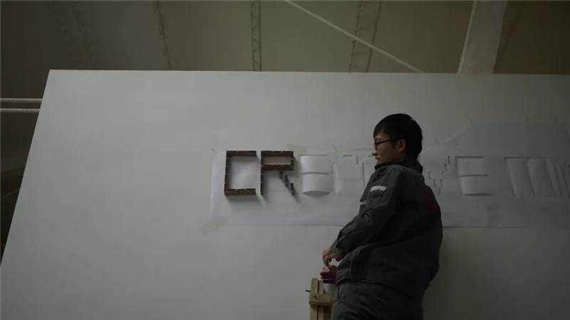 做完以后效果其實很神奇。因為從下面或者遠看,只能看出一句話的英文,看不清楚是用什么材料做的。但是走進觀察之后才發現,原來是用火柴盒來組合而成的。所以有時候選不同的材料,效果是不一樣的。比如這句話,如果用亞克力雕刻不僅無趣,而且價格還高。利用舊物組合而成,更巧妙更有感覺。