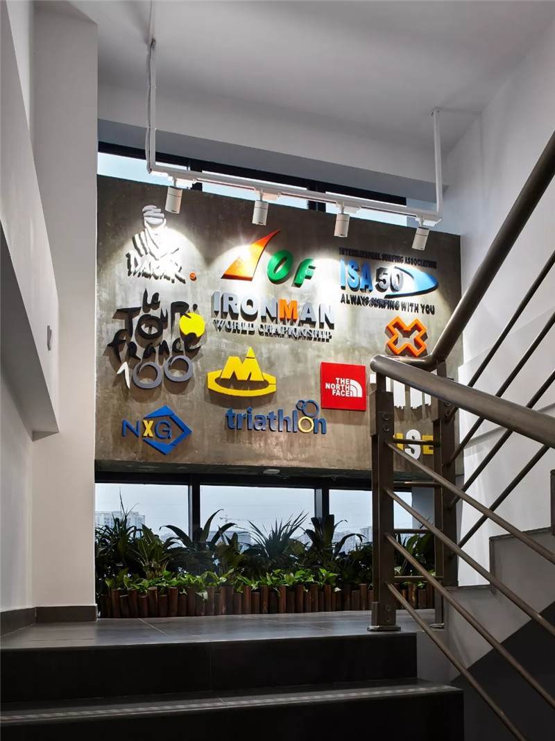 后期我們選用了一些戶外探險的運動裝備,包括有一些極限大賽的LOGO,作為裝飾裝在了墻上,能很好地凸顯科技運動公司的主題,視覺效果也非常好。以上是兩個相對完整的案例,接下來還有一部分比較分散的項目有可能沒有形成系列,但是也都有不同的特點。