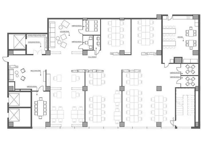 整個辦公室裝修布局建立在開放辦公的概念基礎之上,讓每一個功能空間都能作為一個獨立的有機體進行自由重組和重新定位。