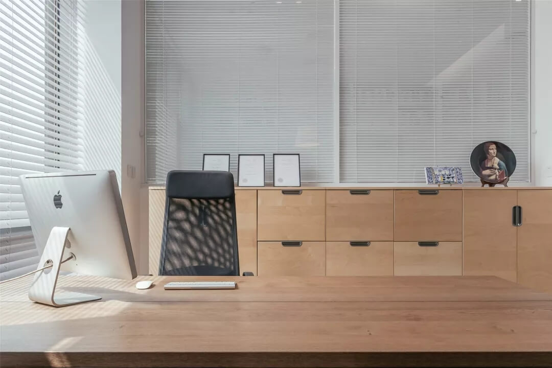 自由無拘的溝通對于團隊的創新至關重要。開放的辦公區是有效獲取信息和激發靈感的地方。百葉窗折射的光影,充足的自然光營造高效的工作環境。空間雖然有限,但發揮最大的性能,開辟出一整面的軟裝材料搭配區。