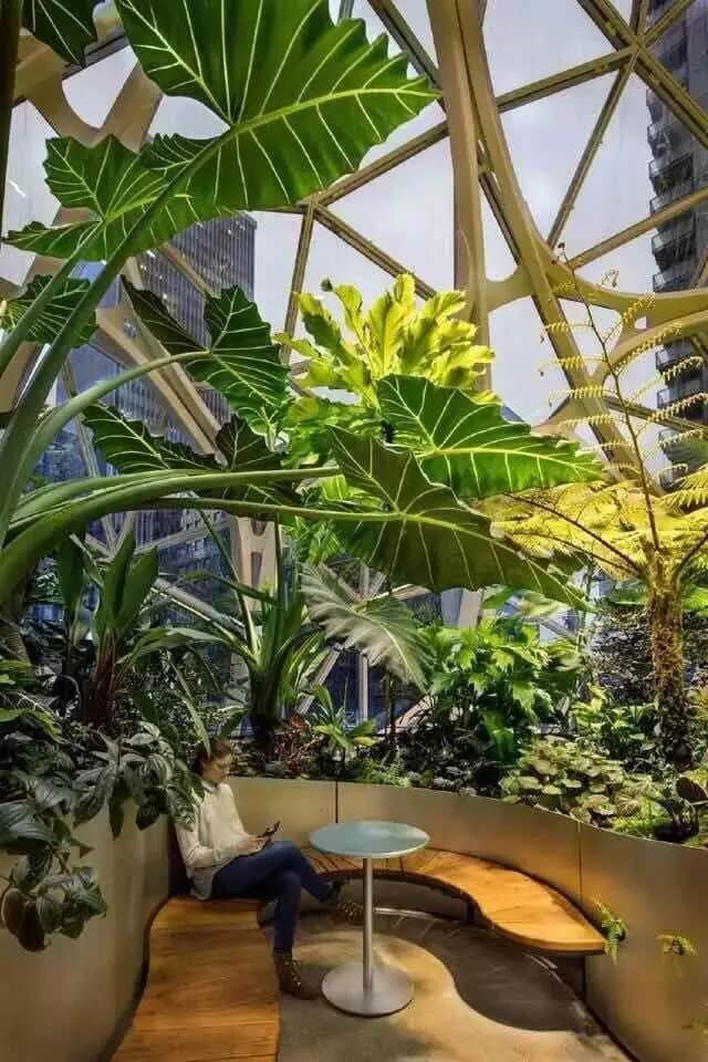 亞馬遜首席園藝師羅·戈里亞多(Ron Gagliardo)說(shuō):“我們把工作環(huán)境和自然聯(lián)系起來(lái),讓大家遠(yuǎn)離普通辦公桌,在這里看不到辦公桌和小隔間。”