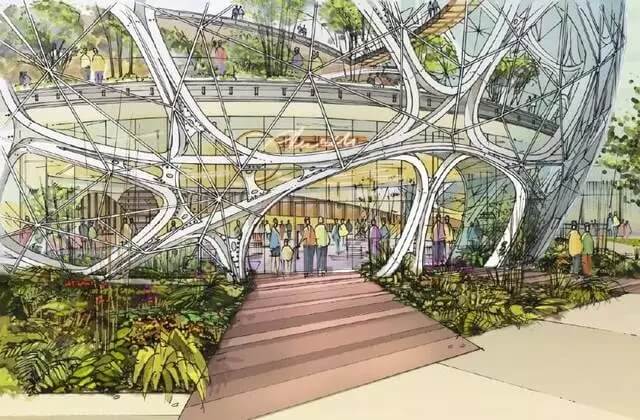 建筑方案草圖 “我們想要?jiǎng)?chuàng)造一些特別的東西,一些對(duì)于亞馬遜和西雅圖來(lái)說(shuō)是標(biāo)志性的東西。”