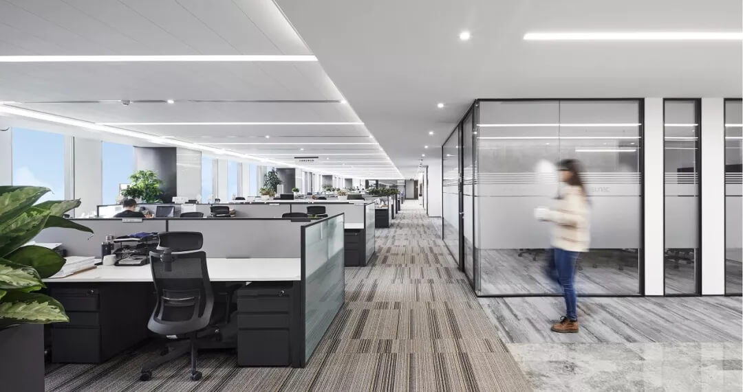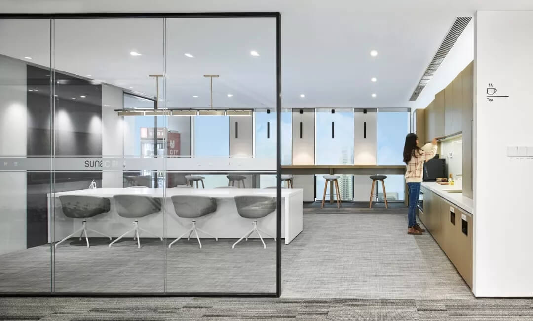 1. 在開敞辦公區內設置站立辦公和討論區,在該區域內配置景觀綠植;