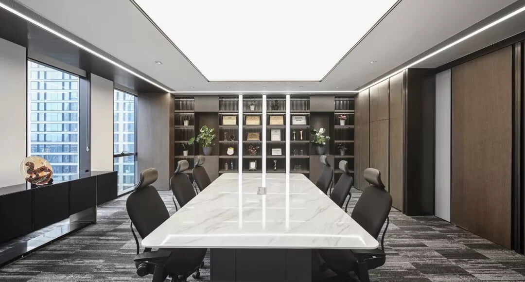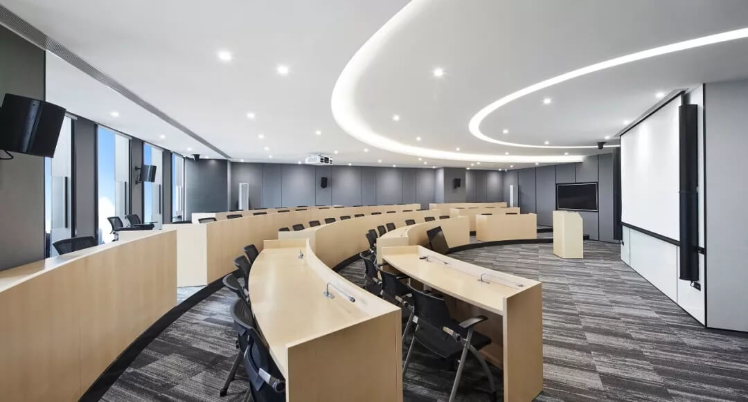 作為集團總部綜合培訓及會議區,設計師在十三層集中布局大培訓室,商學院會議室,商學院自由活動區等規模不等的會議空間,滿足公司層面對會議,活動、共享空間的多元化需求。