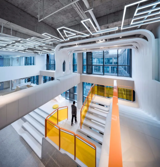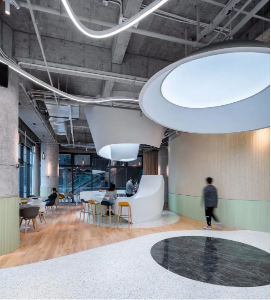 如同城市生態,辦公空間亦成為交流互動的樞紐中心,移除大多數中國典型辦公室的正式和過時的模式特征,設計師創造了可滿足當代員工的需求的現代、創新和舒適的工作空間。