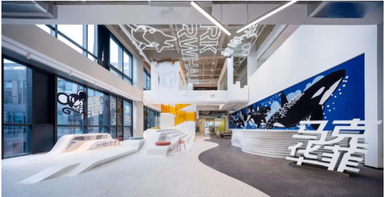 尖端時尚品牌馬克華菲(Mark Fairwhale)的總部位于上海。該項目基于品牌文化基因,主要運用了水與鯨魚的主題元素,并且創造出靈活而又敏捷的工作空間。同時借此呼應其新鮮年輕的風格定位。
