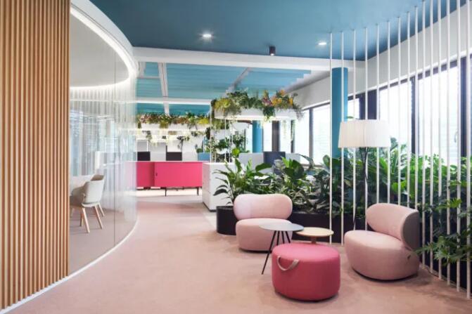 2、隨著Z世代成為辦公空間內主流后,時尚的著裝風格逐漸流行,空間內視覺效果會變得更加活潑。