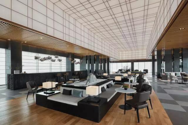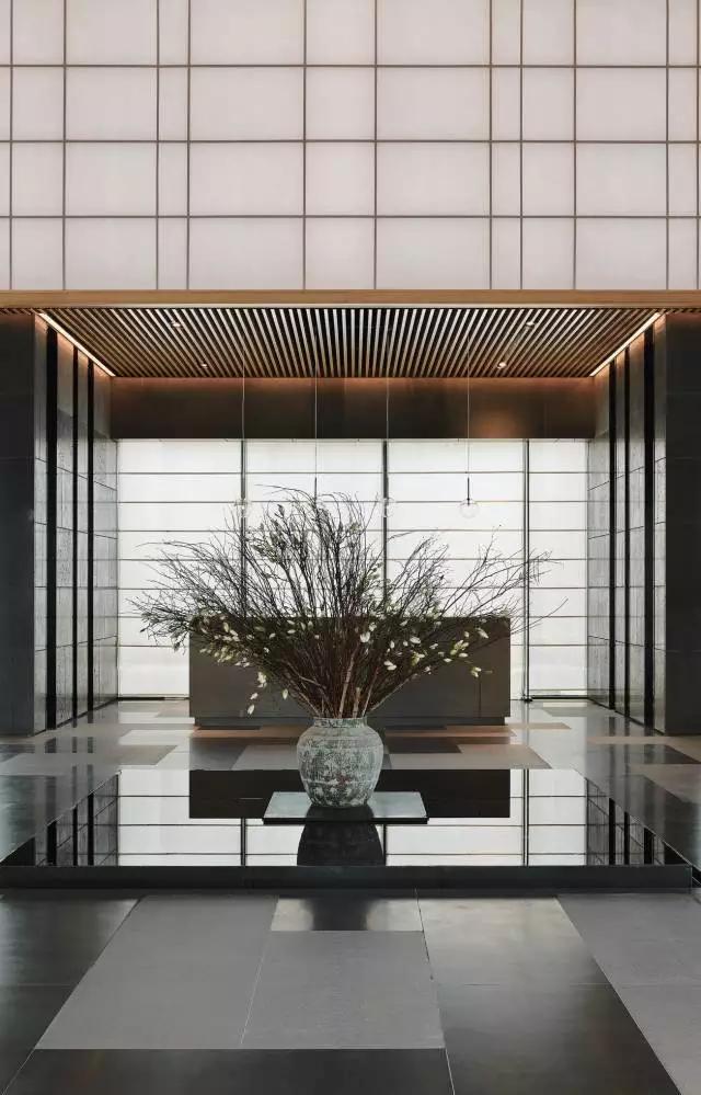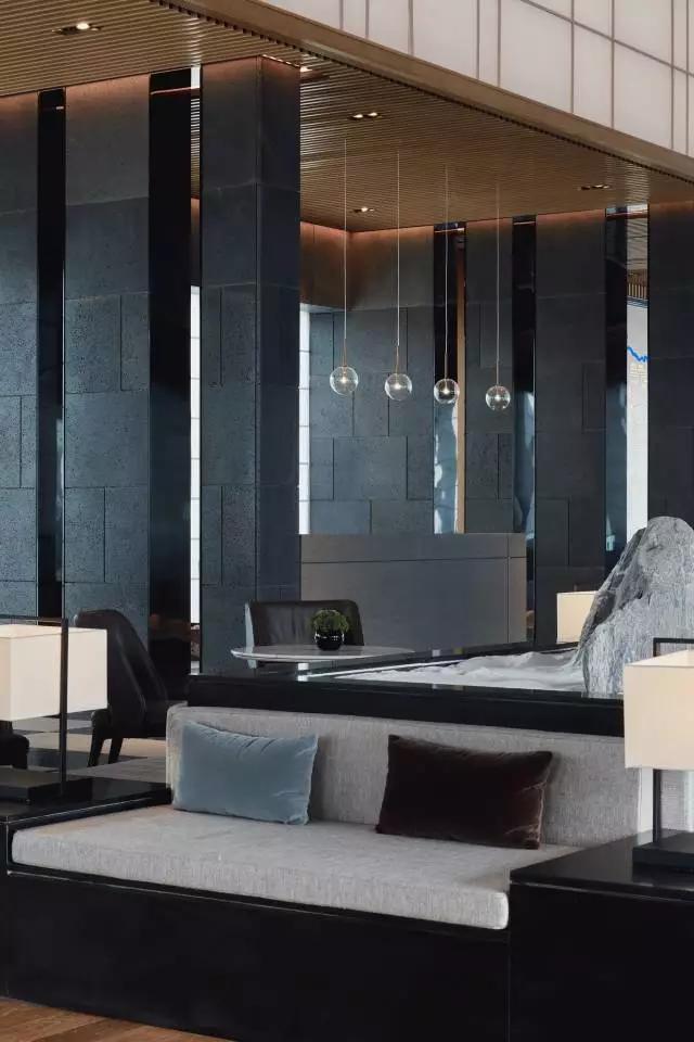 借由東方園林式的假山,打造出“未若柳絮因風(fēng)起”的雪景,美如水墨畫、細(xì)膩至極。這與圍繞式洽談方式布置相結(jié)合,巧妙處理好空間形態(tài)和陳設(shè)之間的關(guān)系。大尺度挑高設(shè)計(jì),加上頂部有序交互的線條,讓空間極具延展性,通透敞亮的照明效果搭配藝術(shù)性燈光點(diǎn)綴,使整體氛圍更顯大氣與品位。該空間通過主體、功能位置、通透的序列式的立面關(guān)系,自然分割空間視線,同時又實(shí)現(xiàn)了將光線引入到室內(nèi)的最大化。