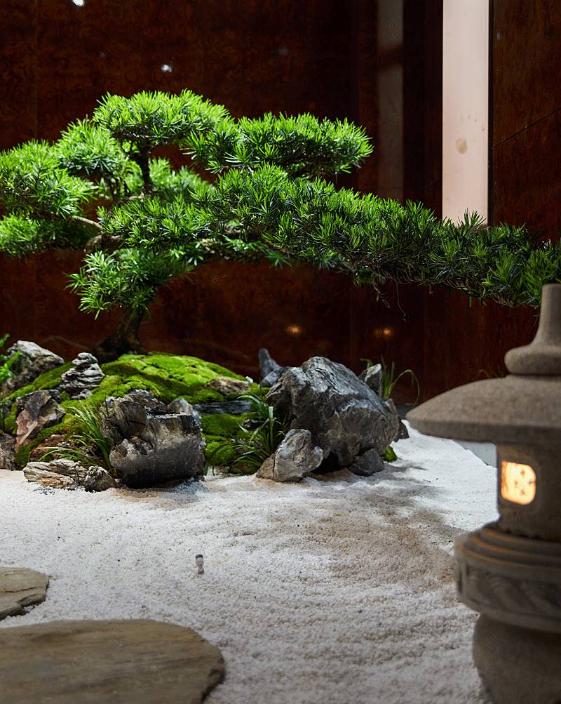 一體成型的景觀軟裝擁有成熟的模擬系統,可控的土壤溫度、澆灌循環等維持著生態蓬勃,無論是呈現效果,還是后期維護,都無可挑剔。
