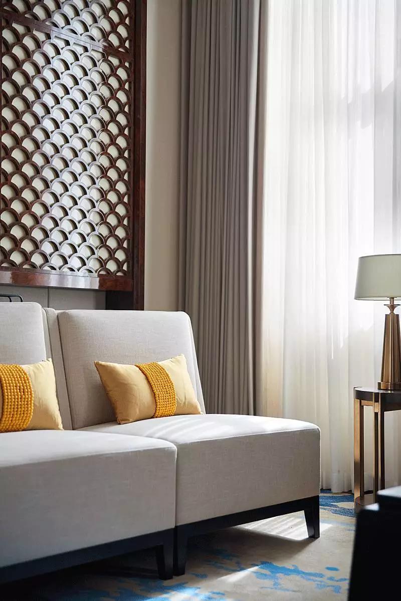 VIP區域以雅致的米白色和簡化的線條打底,奠定空間的基調,為提升舒適度,沙發椅選擇造型簡約的現代款型,通過線條的弧度拿捏出中式的味道。