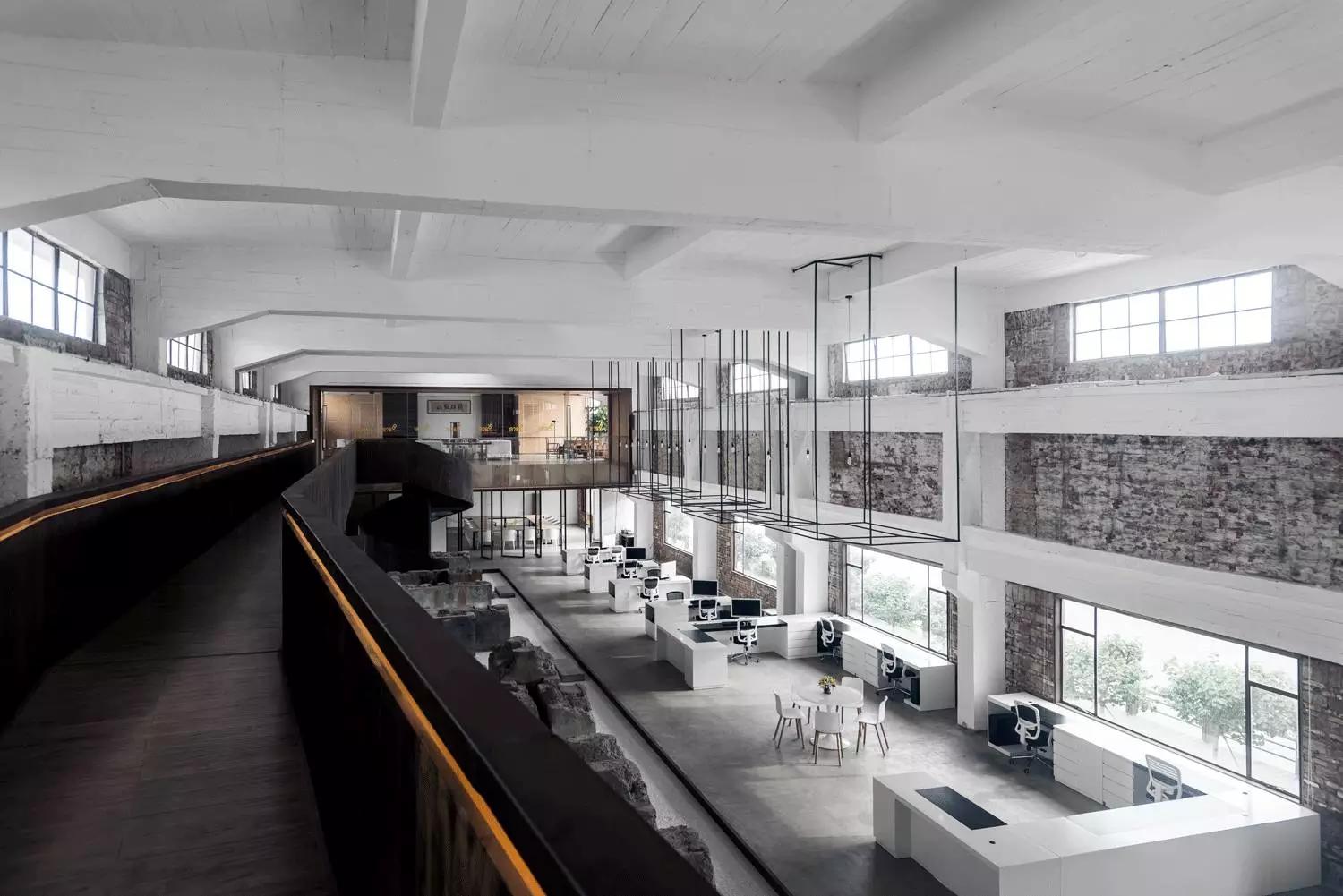 與緊湊的城市辦公空間不同,二樓舊廠房的大層高被保留下來,開敞式的處理利落大氣,沒有過多的穿插變化。