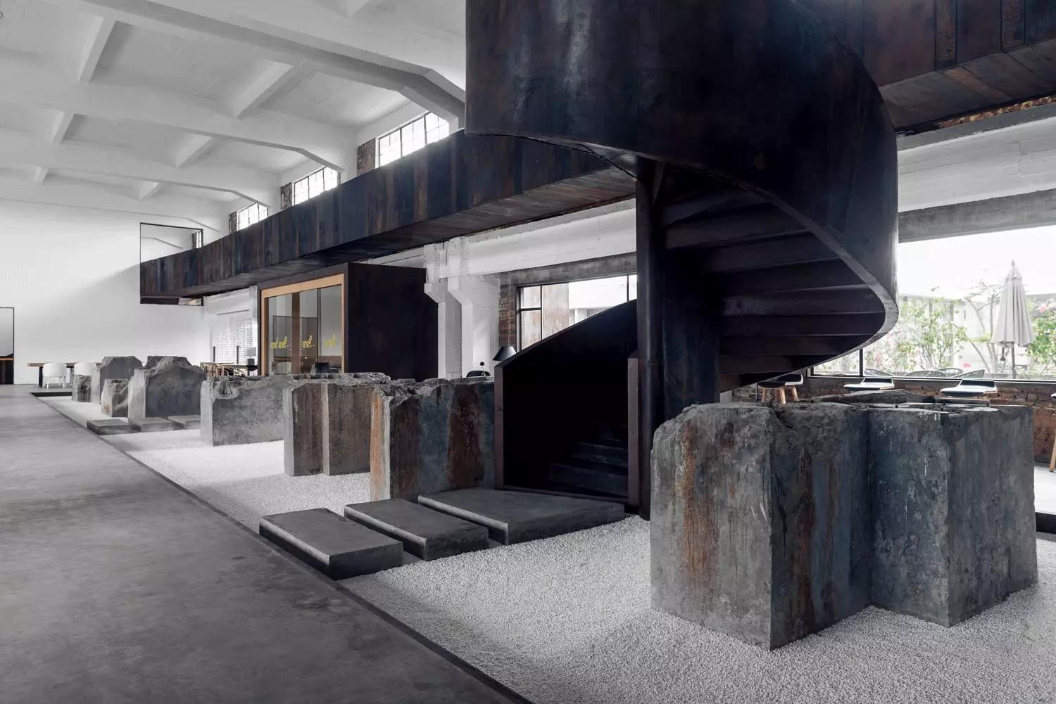 鐵質樓梯像是舊體廠房生長出的枝椏,營造出強烈但不顯突兀的現代感。